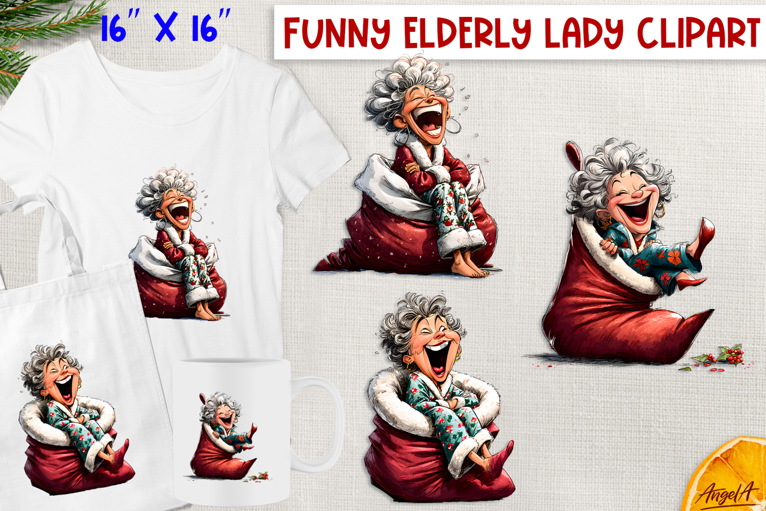 Christmas Clipart Christmas Ornaments Clipart Merry Christmas Clipart Funny Grandma Funny Christmas Png Grandma Clipart Christmas T Shirt Sublimation Santa's Sack Clipart Old Lady Clipart Funny Elderly Woman Clipart
