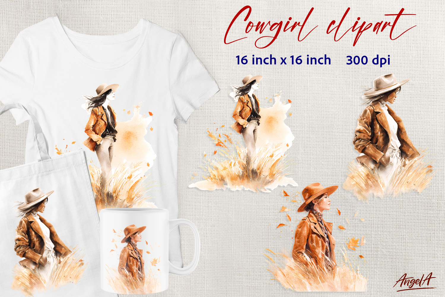 Similar Design Products to Autumn Cowgirl clipart Watercolor T-shirt sublimation PNG