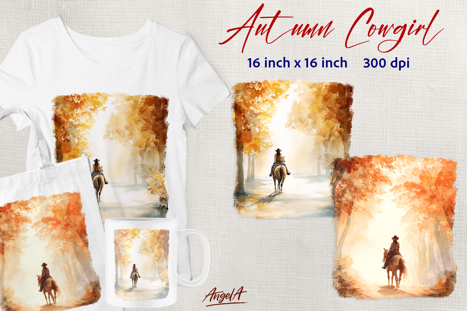 Autumn Clipart Watercolor Woman Watercolor Forest Girl Horse T Shirt Sublimation Designs Tote Bag Sublimation Contryside Cowgirl Tshirt Vintage Cowgirl Clipart Vintage Cowgirl Illustration