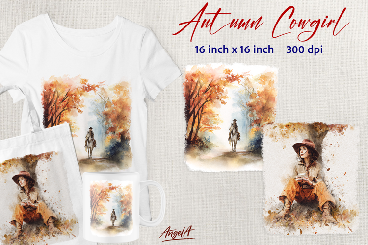 Similar Design Products to Cowgirl clipart Autumn forest watercolor T-shirt designs DTF