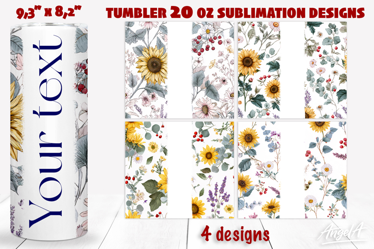 Floral 20 oz tumbler wrap add name Sunflower tumbler design