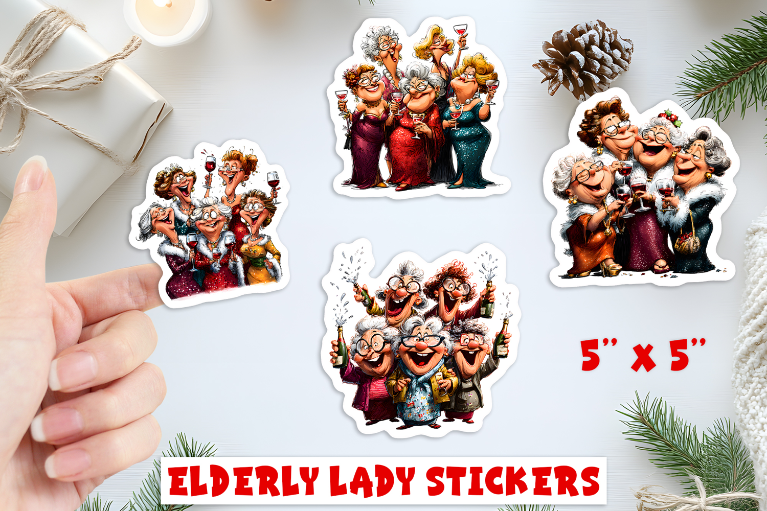 Christmas Stickers Printable Stickers Print And Cut Stickers Funny Stickers Christmas Gift Stickers Best Friends Stickers Happy Elderly People Sticker Old Lady Stickers Elderly Ladies Stickers Drinking Wine Stickers