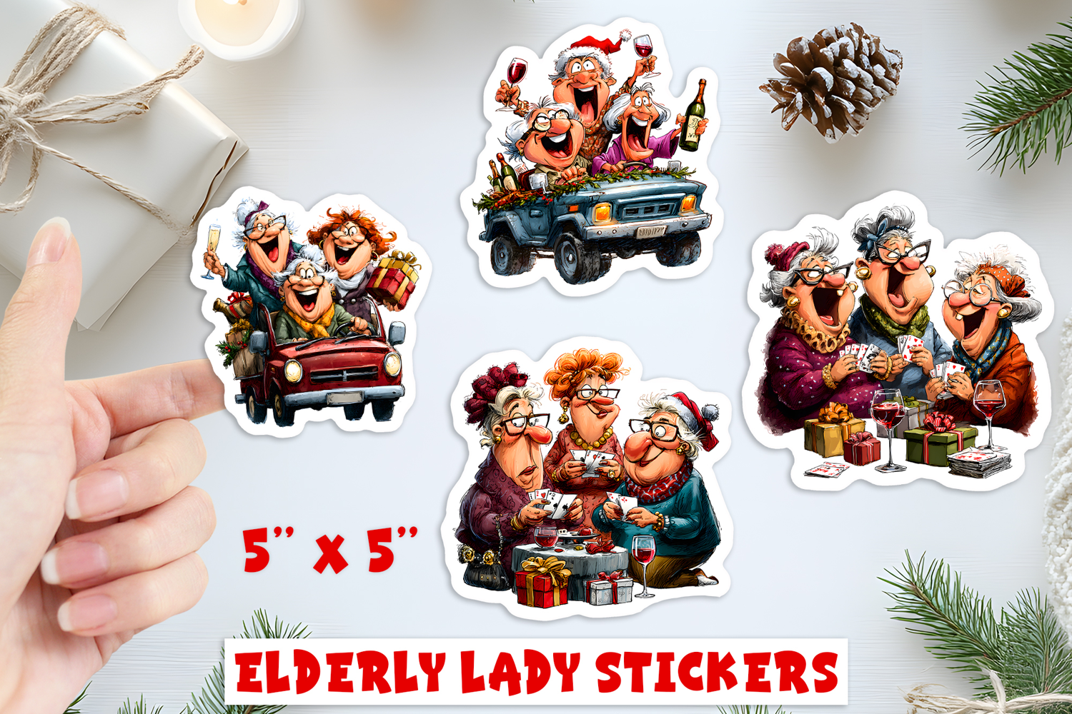 Christmas Stickers Print And Cut Stickers Funny Stickers Friendship Stickers Playing Cards Png Best Friends Stickers Happy Elderly People Sticker Old Lady Stickers Christmas Decorating Stickers Laughing Women Stickers
