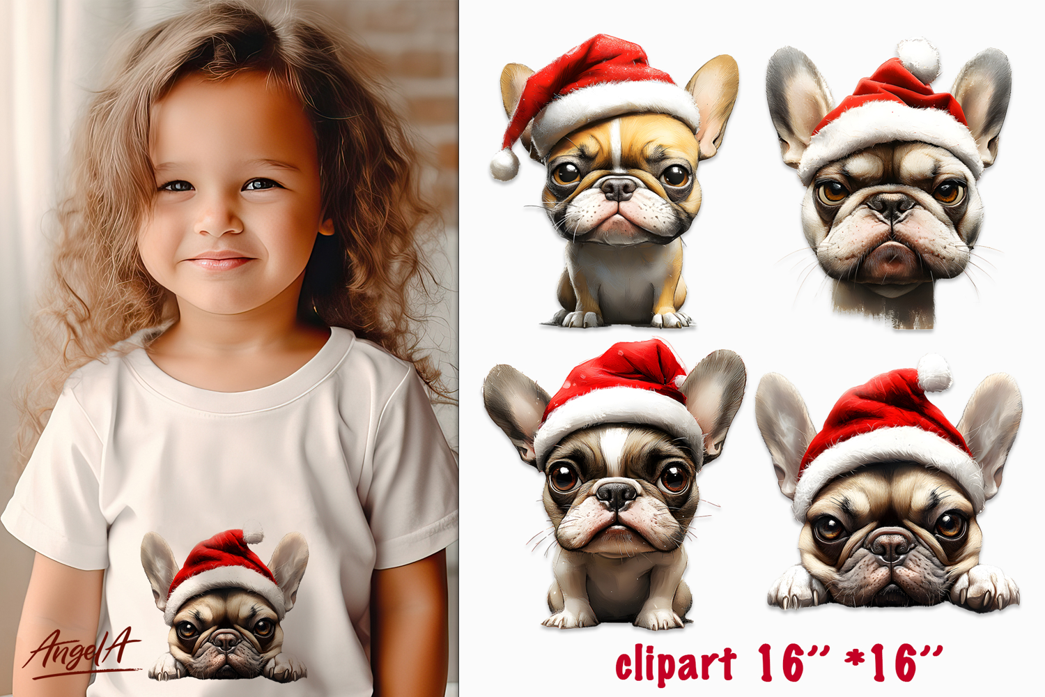 Christmas dog clipart Sad dog sublimation French Bulldog PNG example image 1