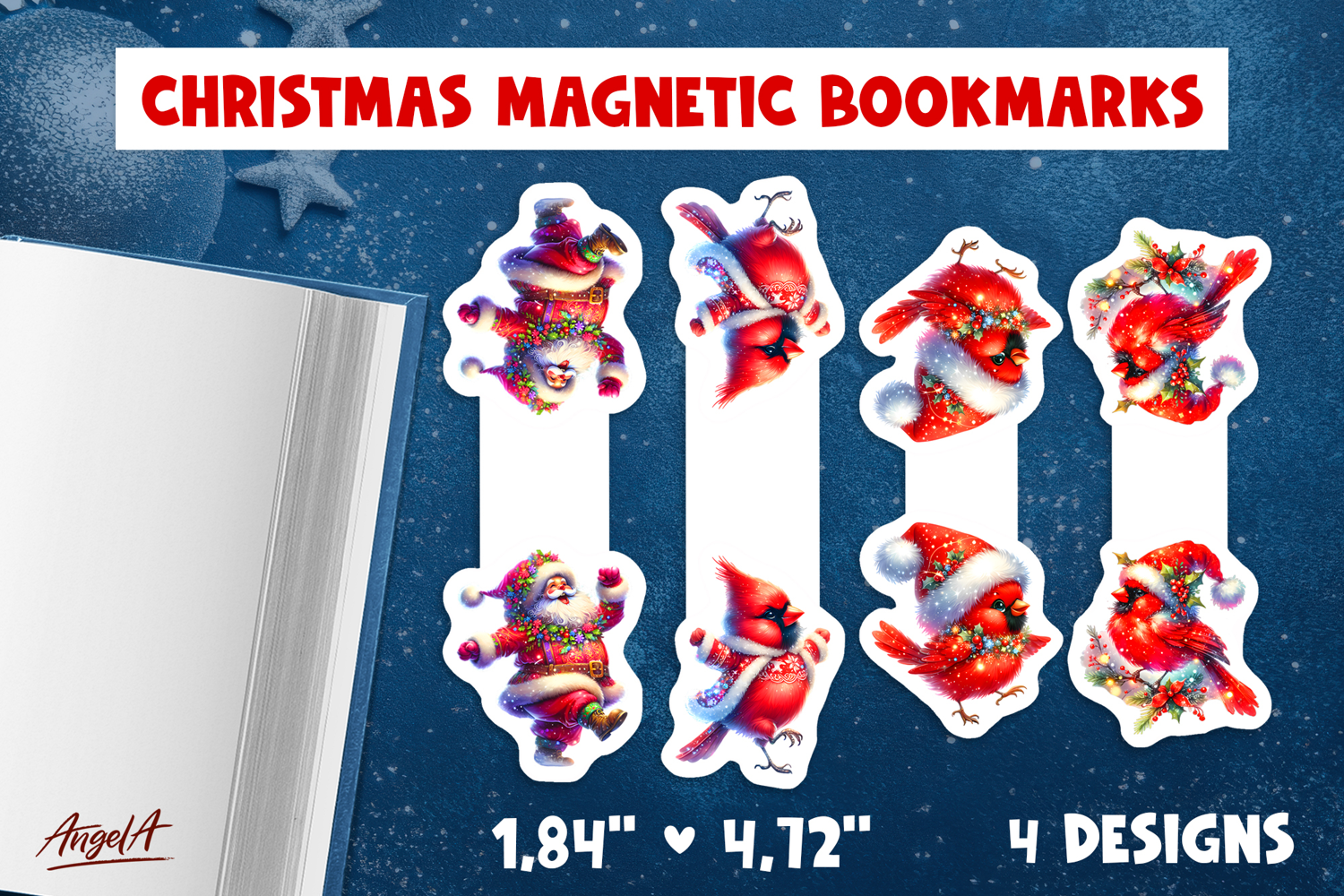 You'll receive ZIP folder with 4 bookmark designs with size 1,84 inch * 4,72 inch PNG 300 dpi.