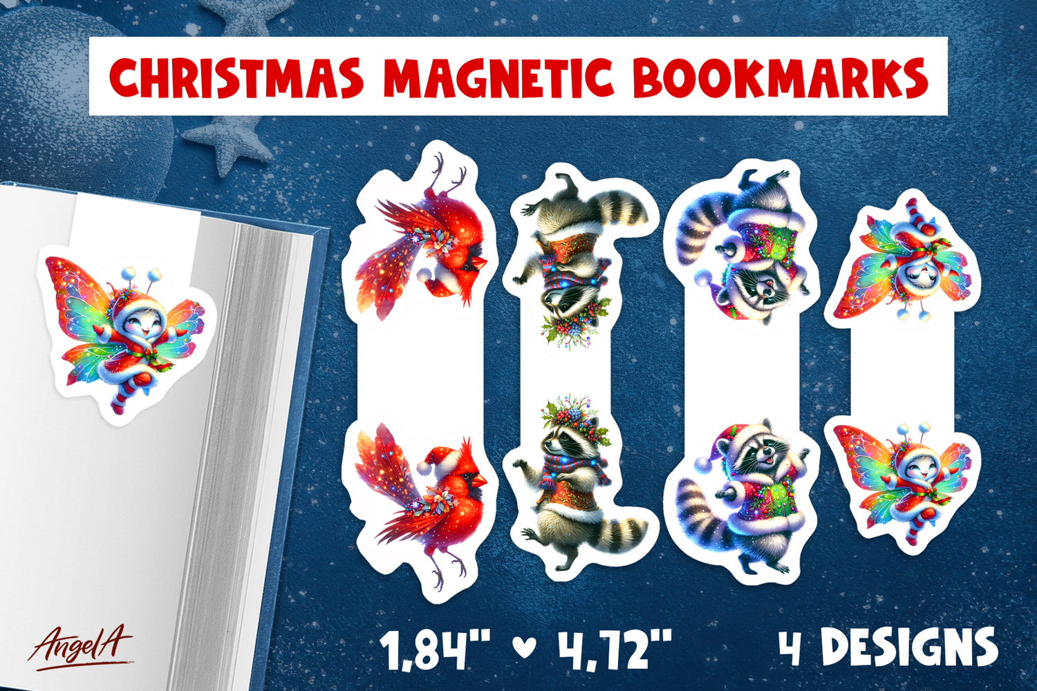 Christmas magnetic bookmarks Funny dancing raccoon, cardinal example image 1