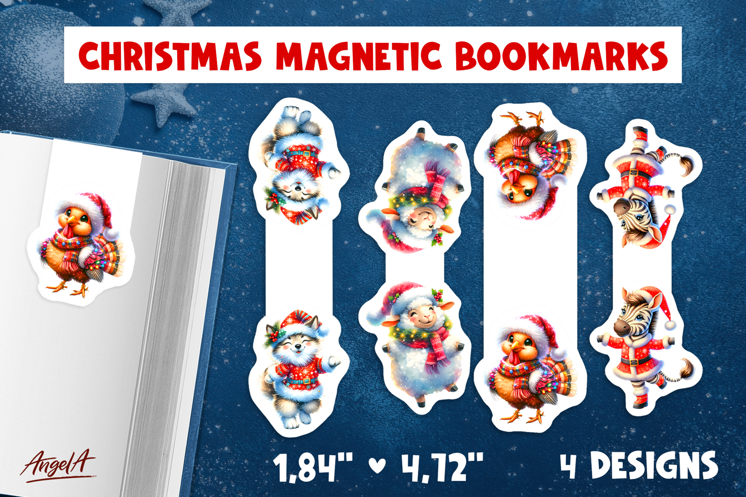 You'll receive ZIP folder with 4 bookmark designs with size 1,84 inch * 4,72 inch PNG 300 dpi.
