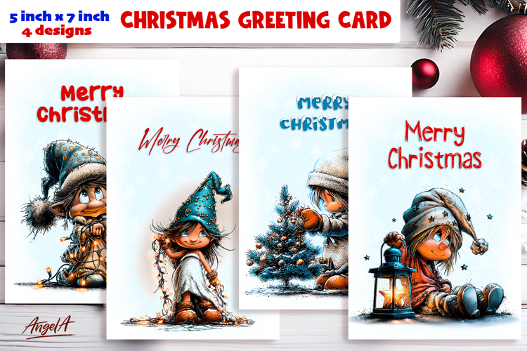 Similar Design Products to Merry Christmas card design Christmas girl gnomes, lights