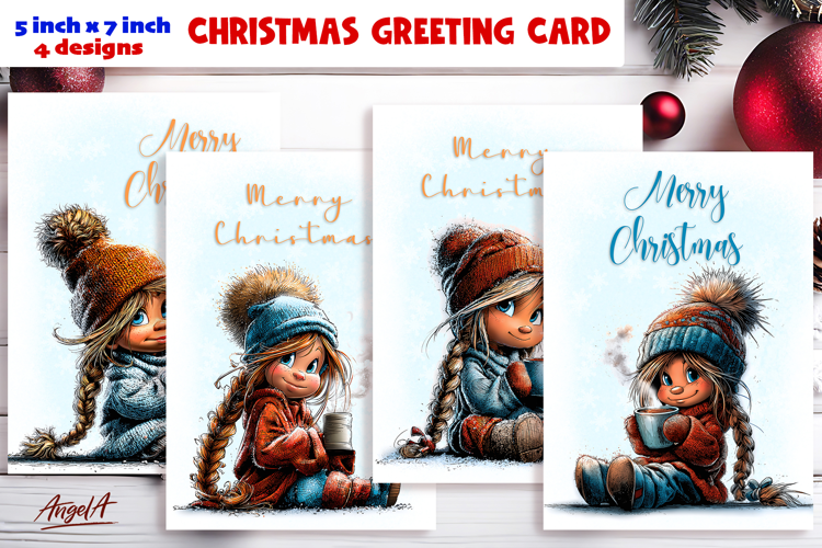 Cute Girl Greeting Card Design Christmas Card Templates Christmas Kitchen Towel Greeting Card Printable Christmas Gnomes Png Printable Christmas Cards Girl With Cup Of Tea Fairy Card Girl Christmas Card