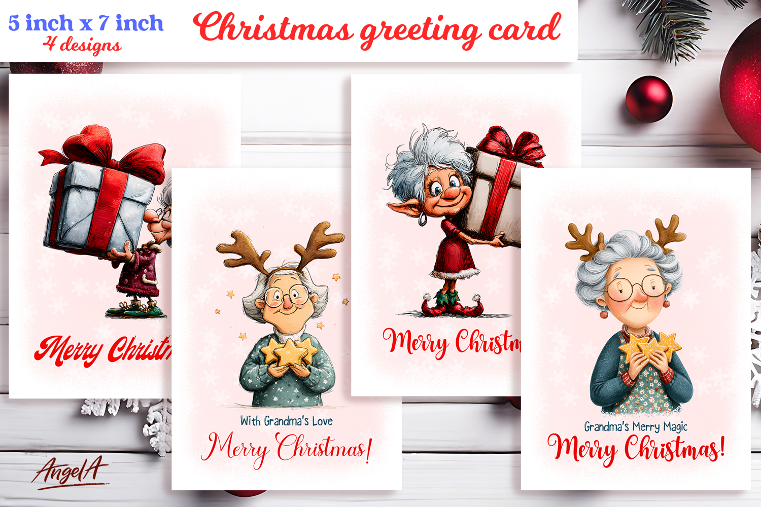 Merry Christmas card templates printable Cute old lady PNG example image 1