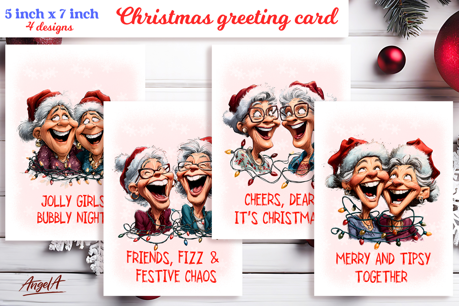 Christmas card templates Old lady Grandma with best friend