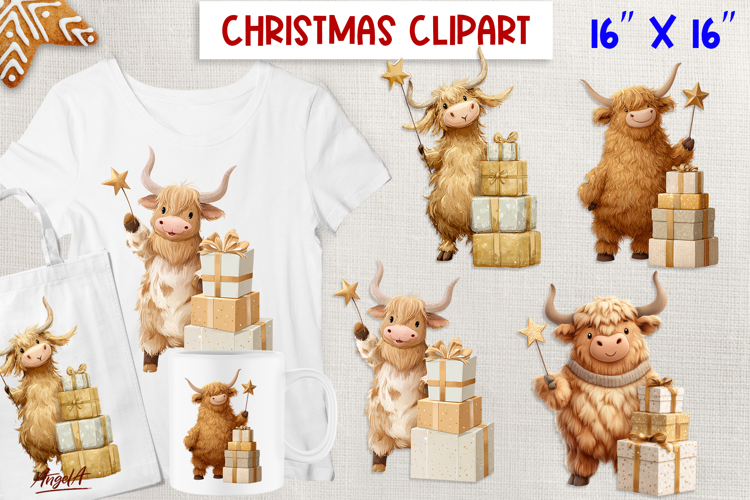 Birthday Clipart Gift Boxes Clipart Mug Sublimation Design Highland Cow Clipart Christmas T Shirt Sublimation Highland Cow Sublimation Highland Cow Png Christmas Characters Clipart Png Fairy Christmas Character Clipart Christmas Cow With Magic Wand