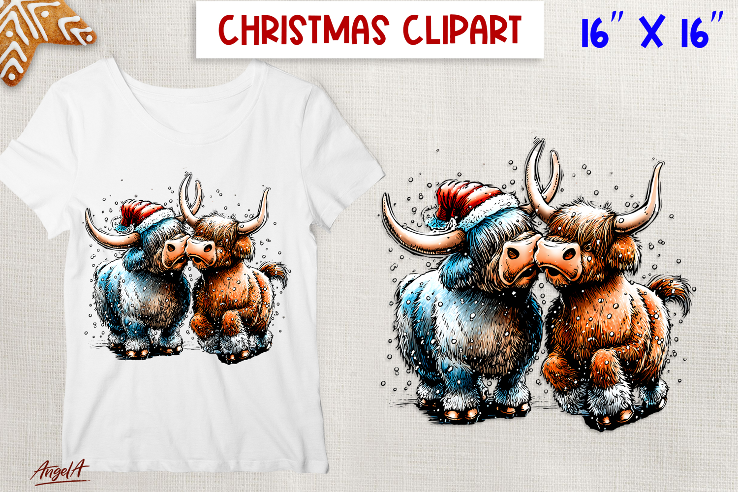 Christmas clipart is a design of a two cute Holiday highland cows, best friends. You can use these funny designs for T-shirt, pillow, sticker, greeting card, home decor, sign, gift tag or other your project!