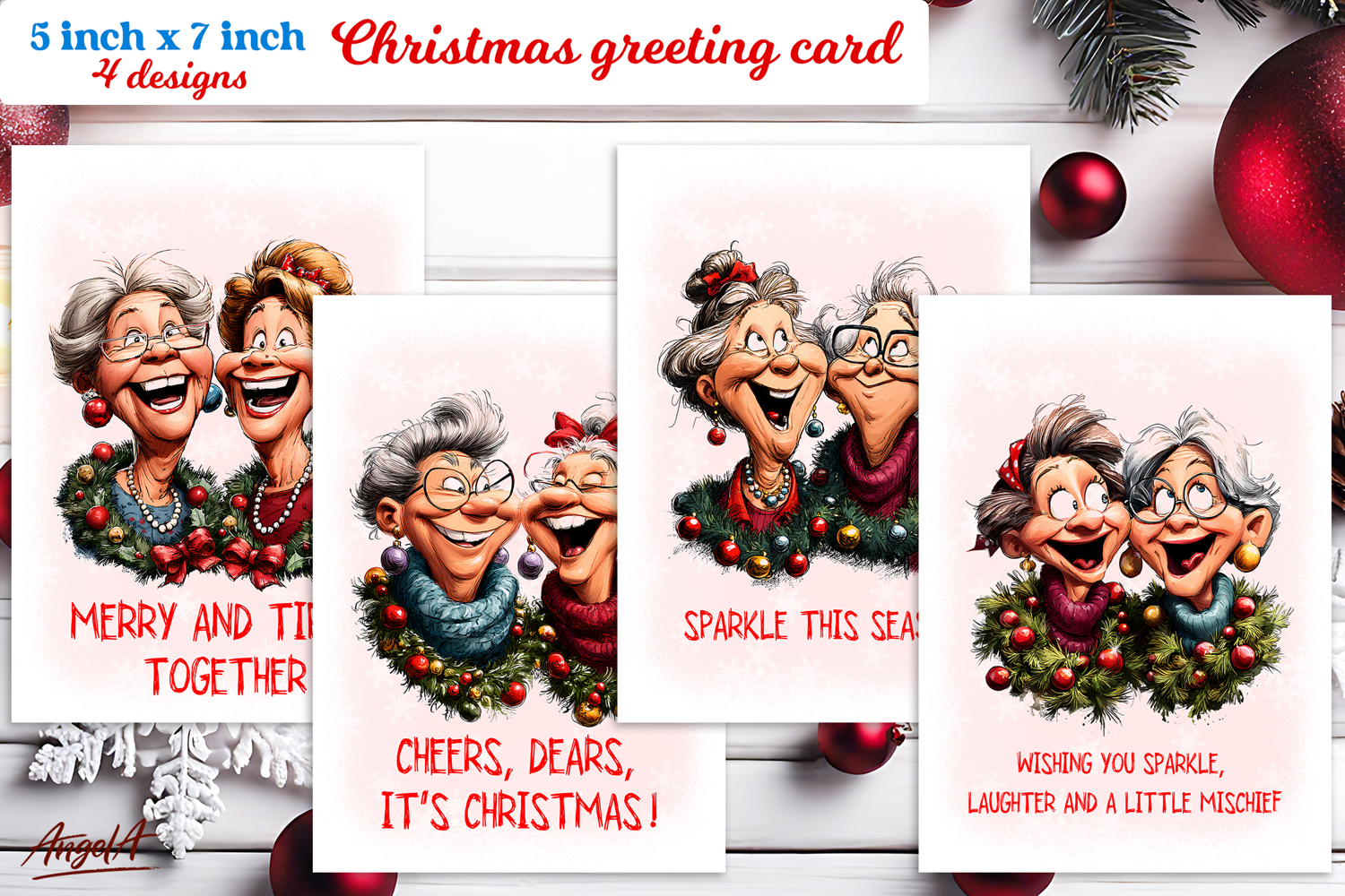 Similar Design Products to Christmas card templates Funny elderly lady and best friend