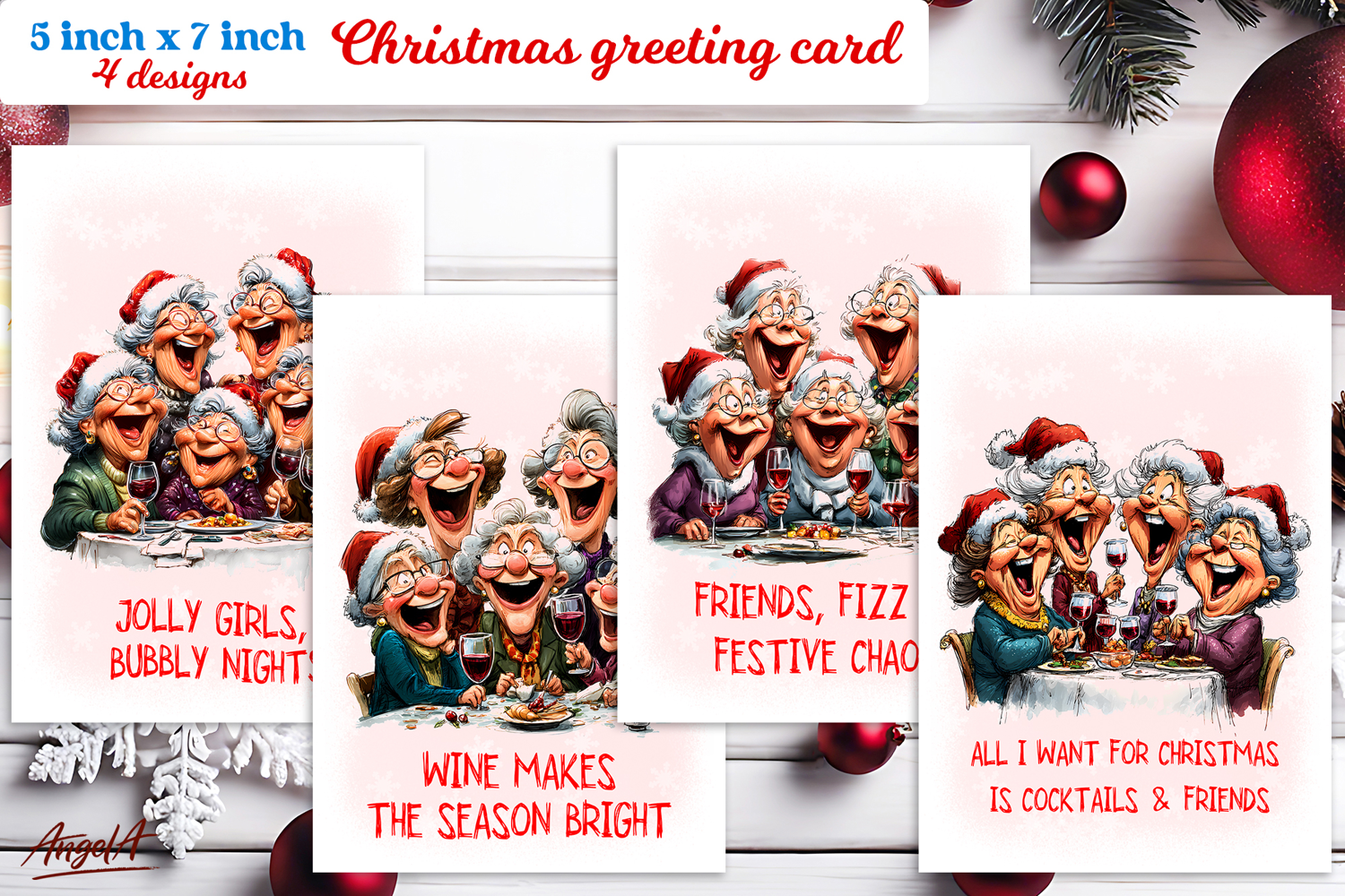 Similar Design Products to Christmas card design Funny elderly lady with best friends