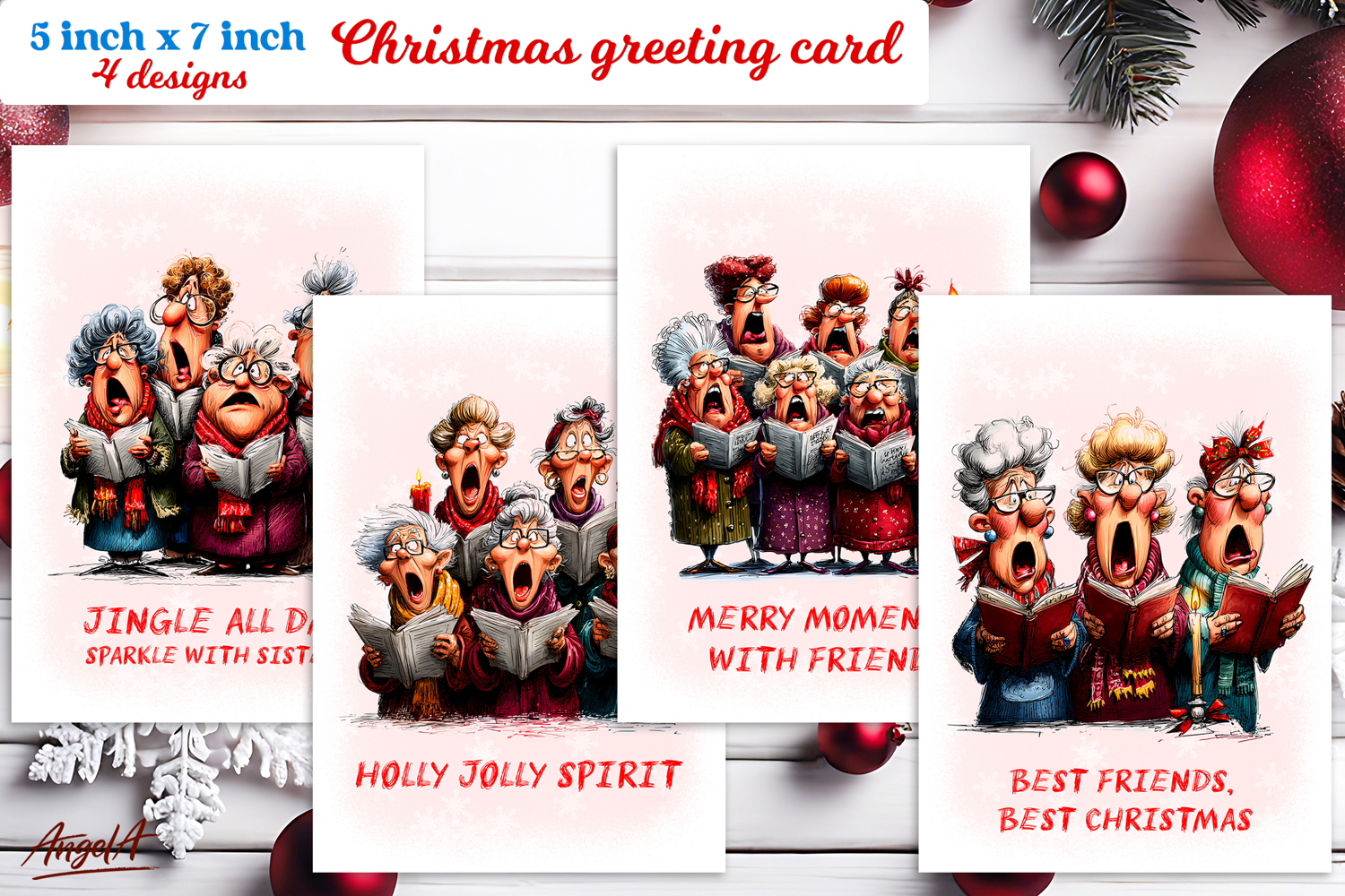 Christmas card design is printable Christmas card of a funny old ladies sing Christmas song, celebrating Christmas, holiday wishes, funny quote, Christmas sayings.