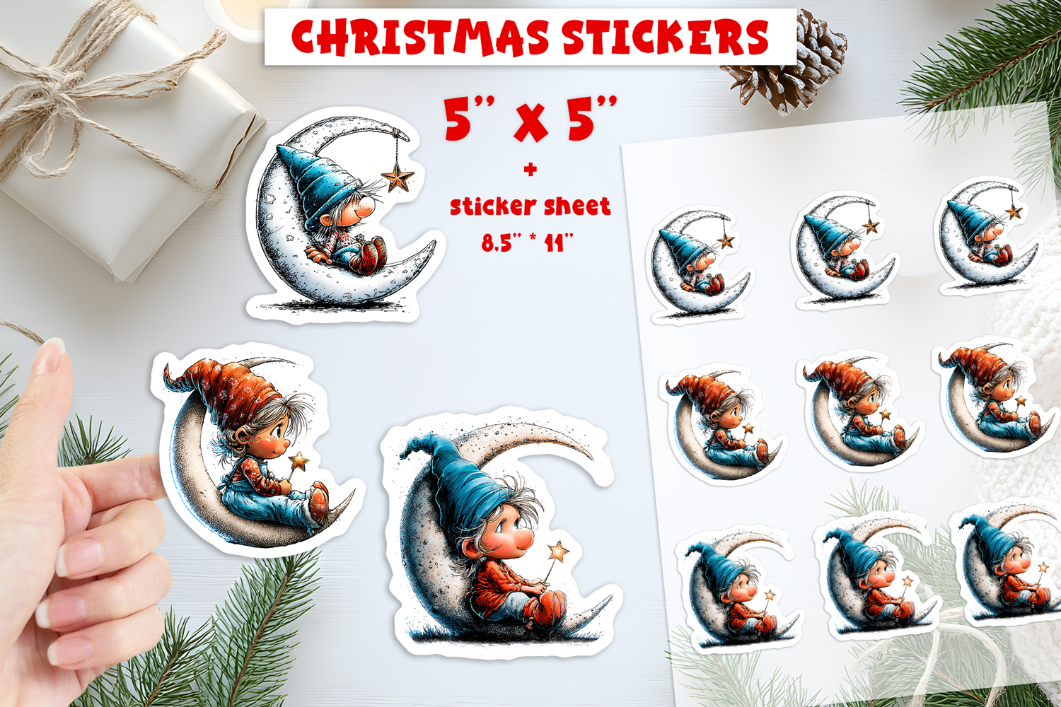 Similar Design Products to Christmas stickers, cute baby gnome with moon print and cut