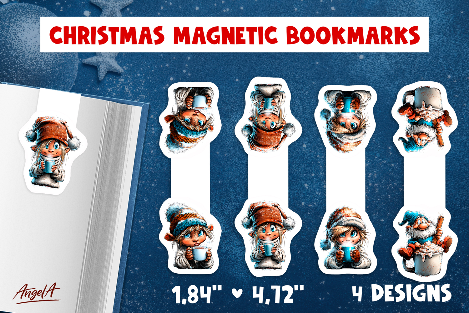 Christmas magnetic bookmarks gnome, girl with hot cocoa mug example image 1