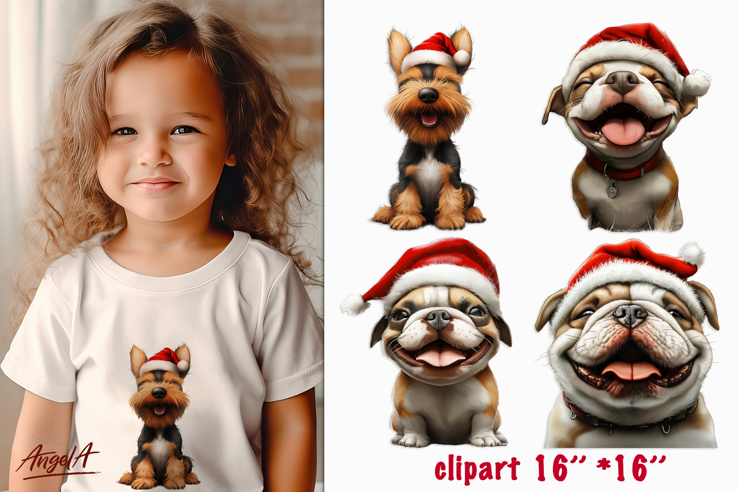 Christmas dog clipart Happy bulldog, Airedale sublimation example image 1