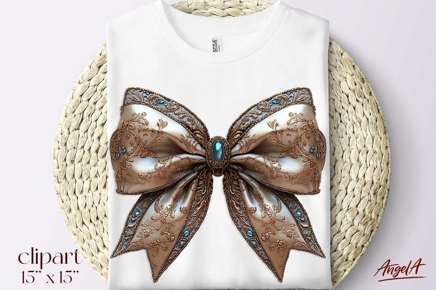 Vintage lace brown coquette bow tie with gemstones will perfect as element of your design also as T-shirt design, pillow, mug or other your project!