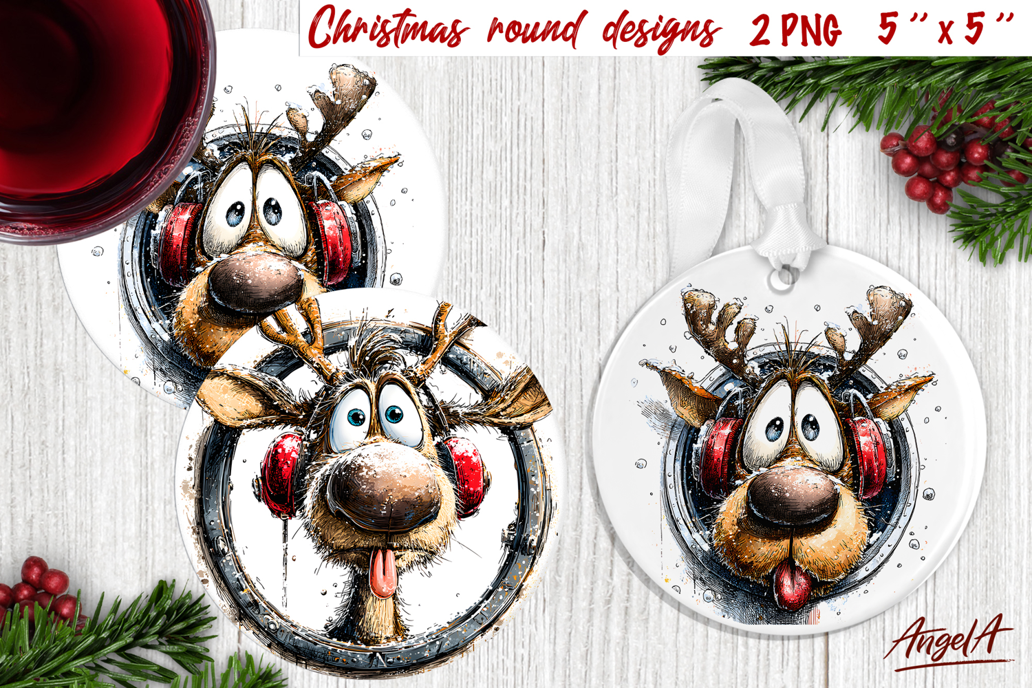 Adult Humor Merry Christmas Sublimation Deer Head Png Christmas Ornament Png Wine Coaster Round Christmas Ornament Reindeer Face Png Round Car Coaster Car Coaster Sublimation Designs Christmas Reindeer Illustratrion