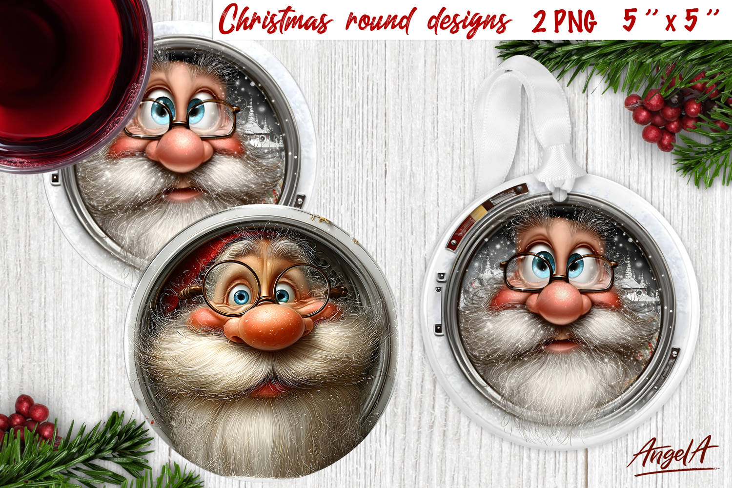 Adult Humor Merry Christmas Sublimation Santa Claus Sublimation Christmas Ornament Png Santa Claus Illustration Wine Coaster Cute Santa Face Round Christmas Ornament Round Car Coaster Car Coaster Sublimation Designs