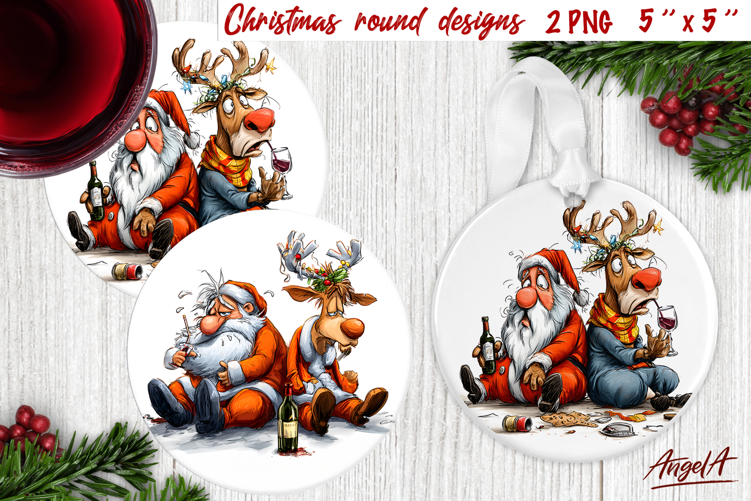 Adult Humor Merry Christmas Sublimation Santa Claus Sublimation Christmas Ornament Png Santa Claus Illustration Wine Coaster Round Christmas Ornament Round Car Coaster Car Coaster Sublimation Designs Christmas Reindeer Illustration