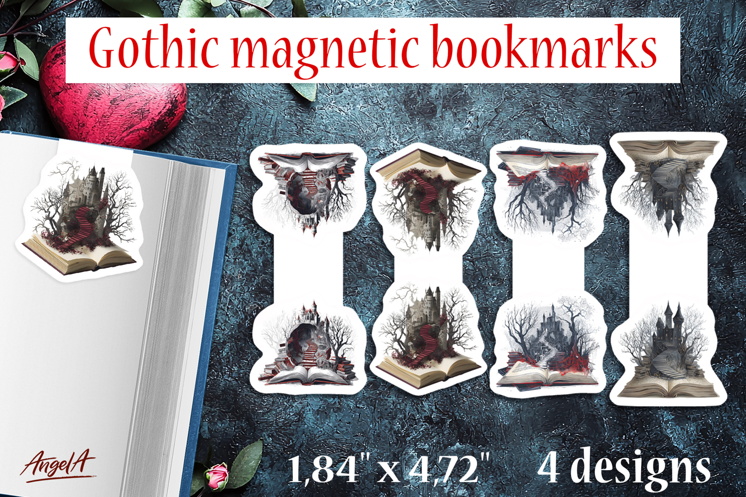 You'll receive ZIP folder with 4 bookmark designs with size 1,84 inch * 4,72 inch PNG 300 dpi.
