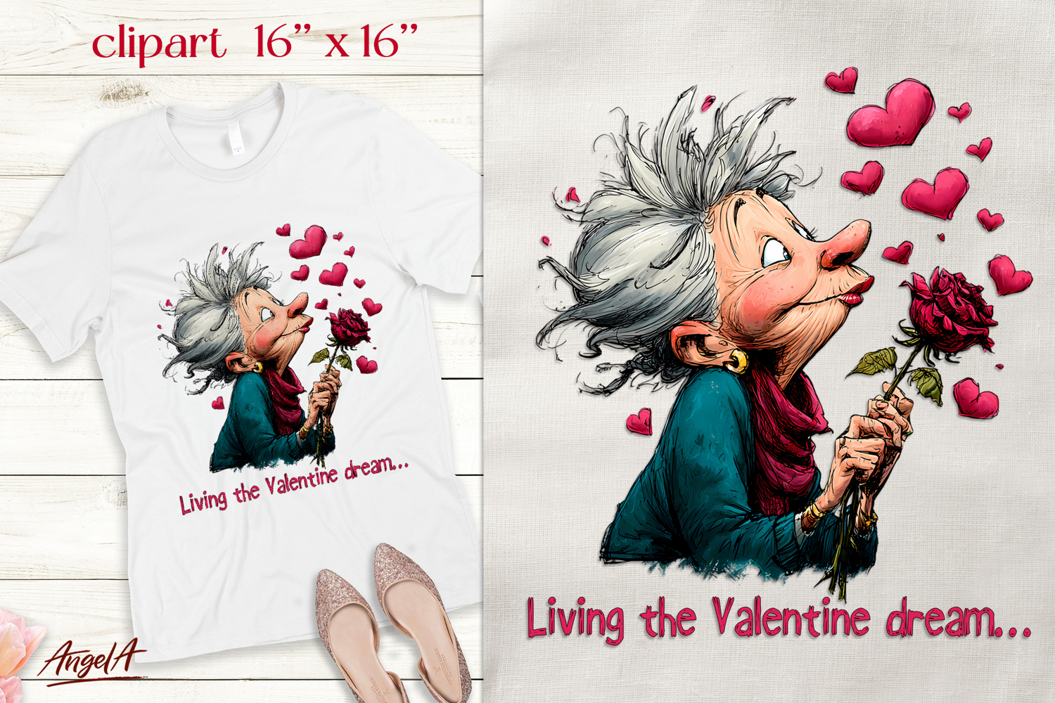 Single Valentine elderly lady clipart Funny Valentine quote example image 1
