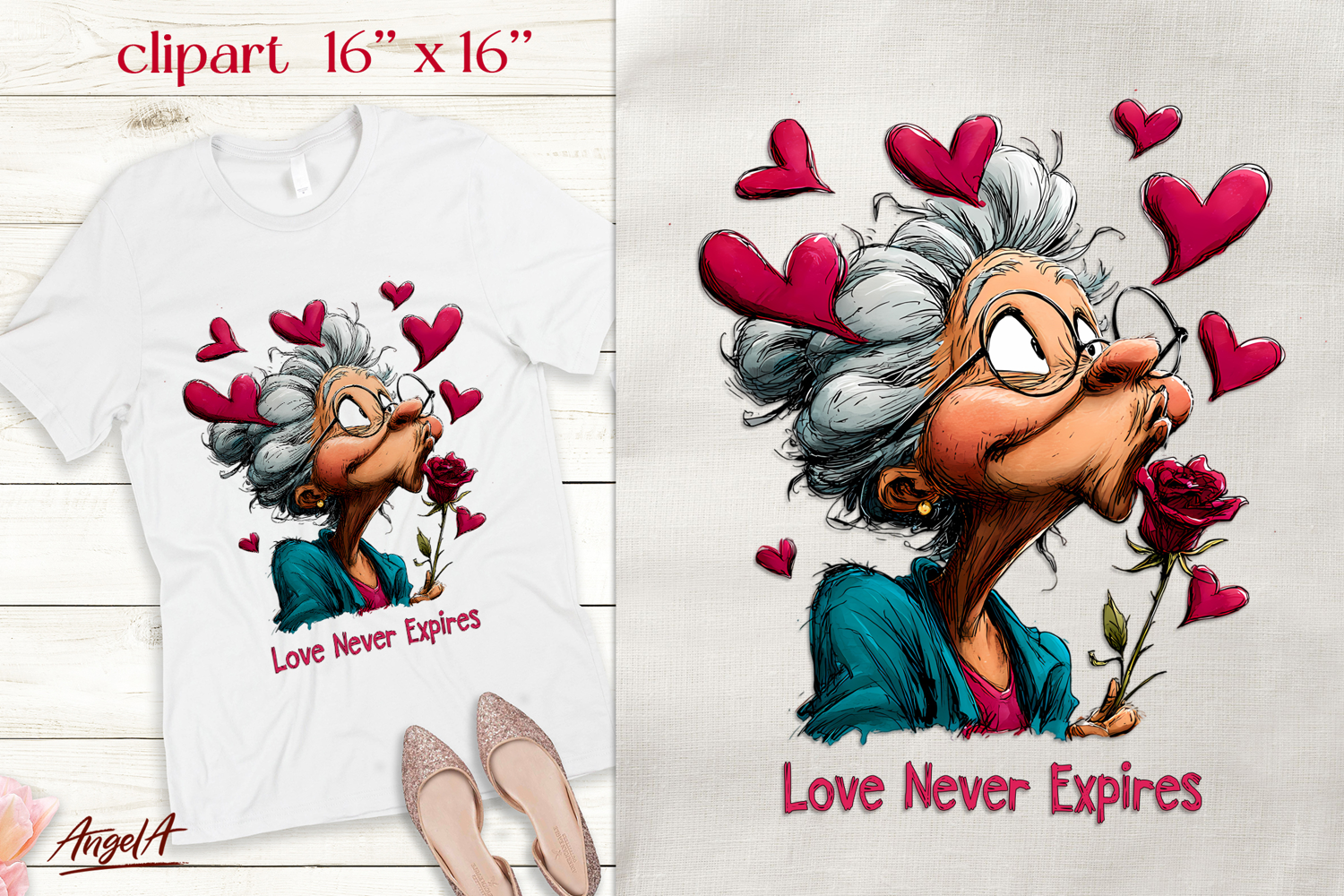 Valentine quote Single Valentine elderly lady clipart PNG example image 1