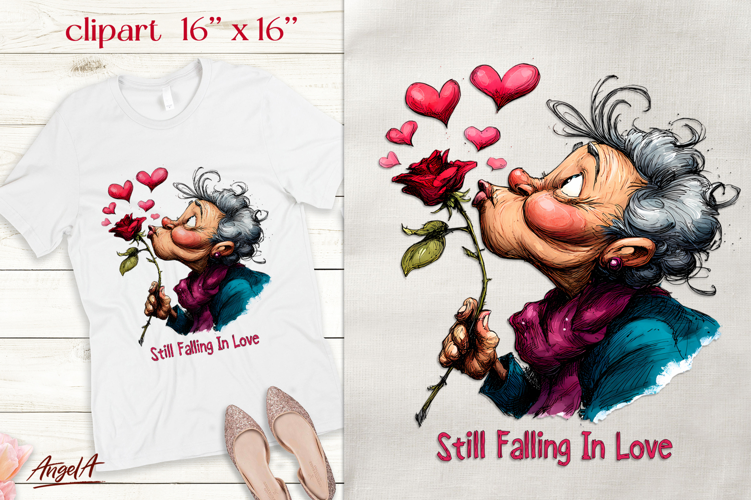 Similar Design Products to Single Valentine clipart Elderly lady Romantic quote PNG
