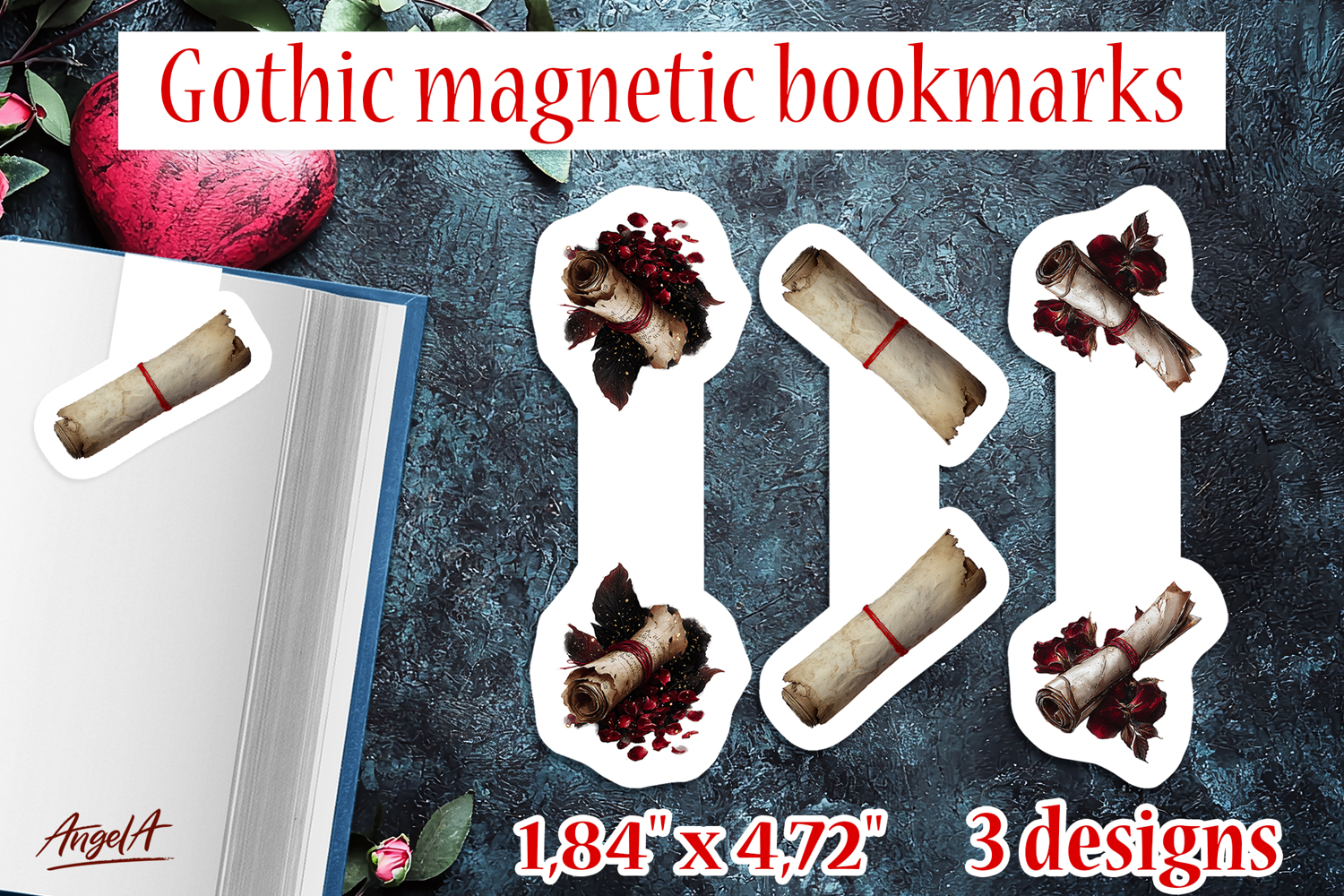 Floral Gothic magnetic bookmarks vintage papyrus, red roses example image 1