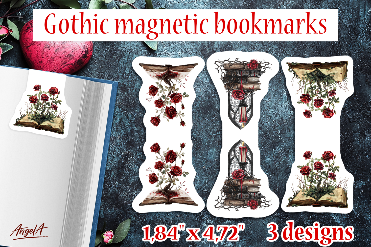 You'll receive ZIP folder with 3 bookmark designs with size 1,84 inch * 4,72 inch PNG 300 dpi.