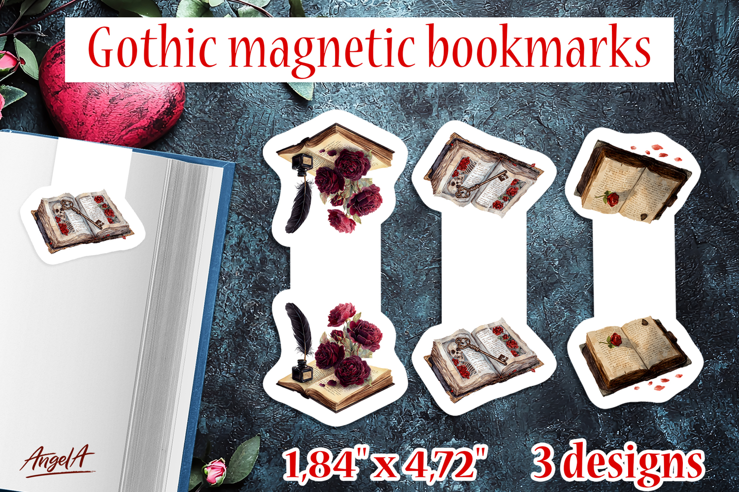 You'll receive ZIP folder with 3 bookmark designs with size 1,84 inch * 4,72 inch PNG 300 dpi.