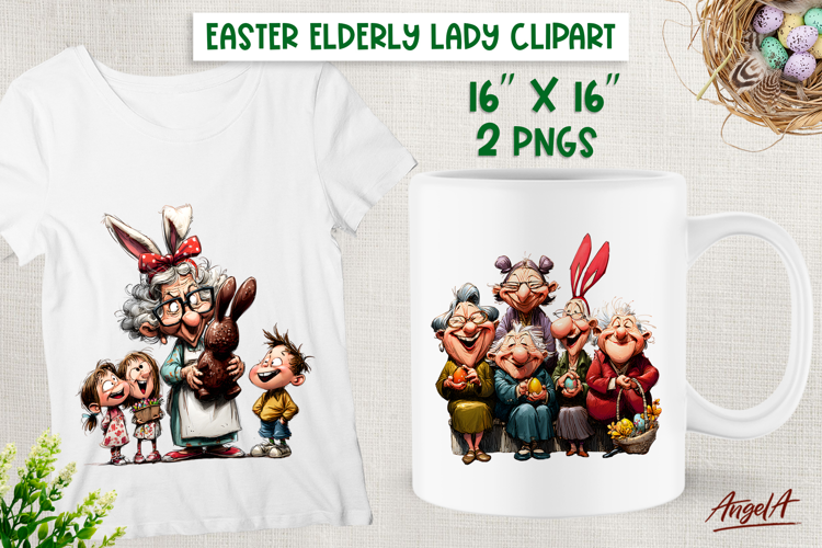 Similar Design Products to Elderly lady Friends Grandma Grandchildren Easter clipart