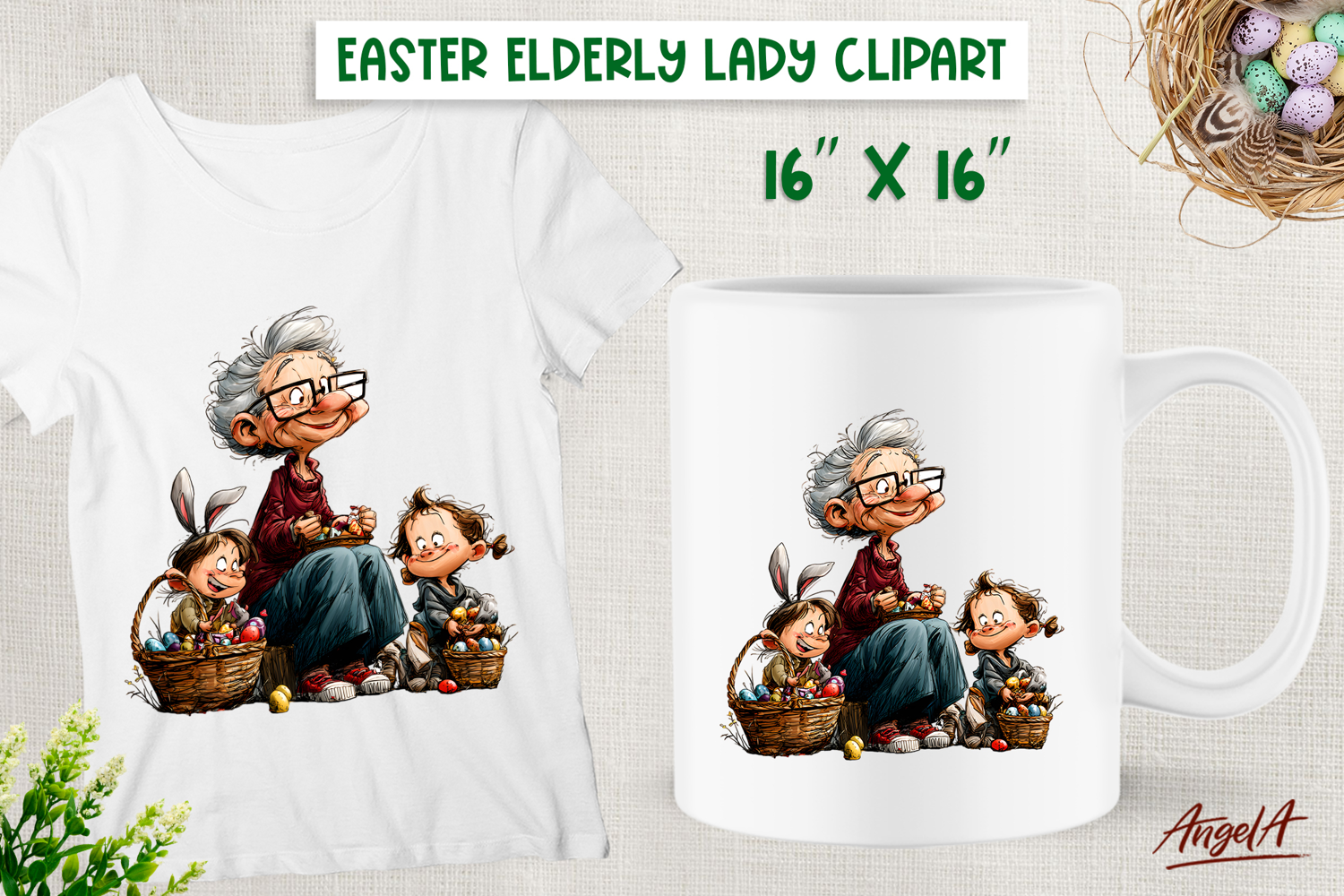 Similar Design Products to Elderly lady Easter clipart Grandma with grandchildren PNG