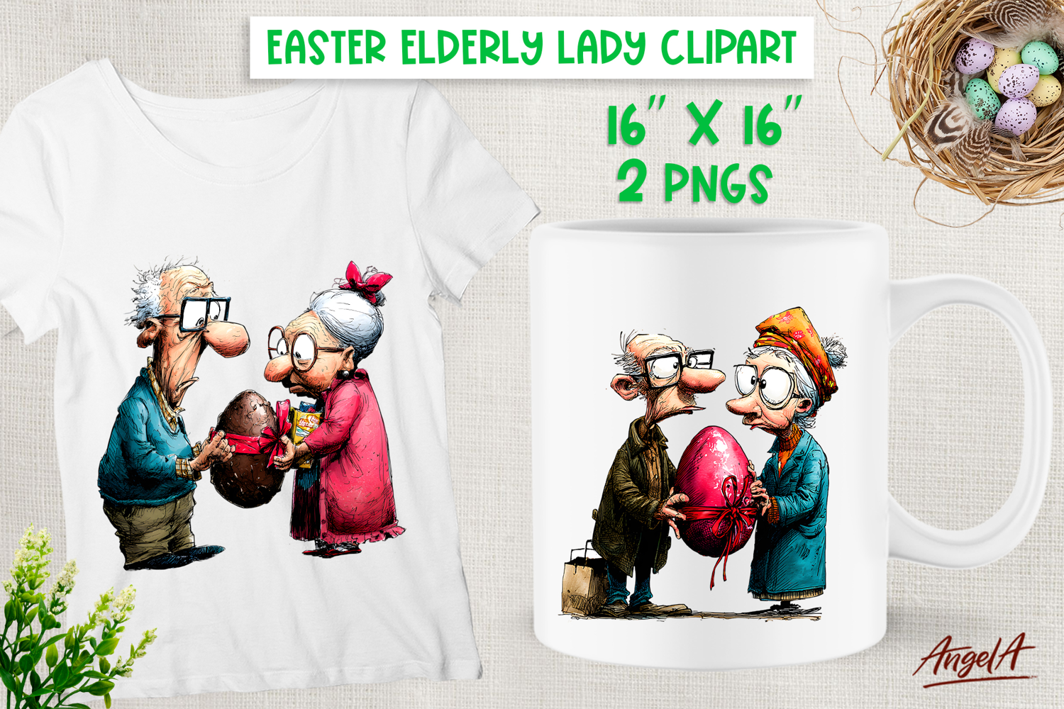 Easter Clipart Adult Humor Couple Clipart Easter Sublimation Grandma Clipart Grandparents Clipart Friendship Clipart Chocolate Eggs Happy Elderly People Funny Elderly Lady Clipart