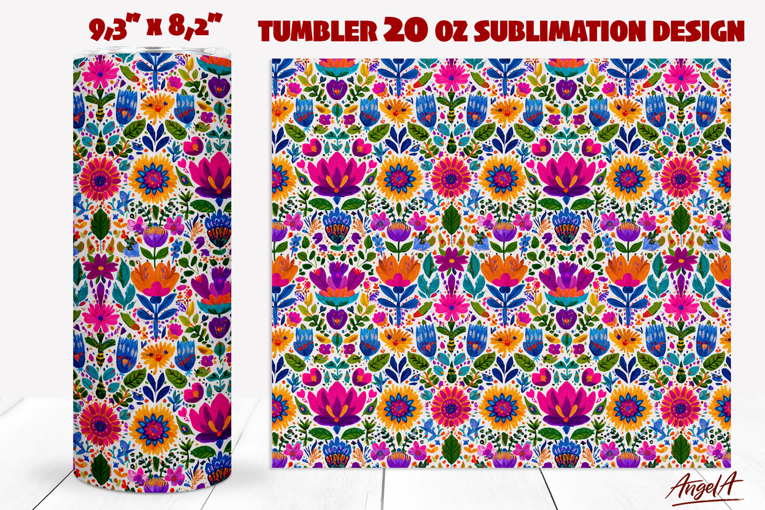 Hand Drawn Flowers 20 Oz Tumbler Wrap Summer Tumbler Design Tumbler Wrap Sublimation Folk Art Flowers Summer Tumbler Wrap Floral Tumbler Wrap Colorful Flowers Tumbler Folk Art Floral Ethnic Pattern Tumbler