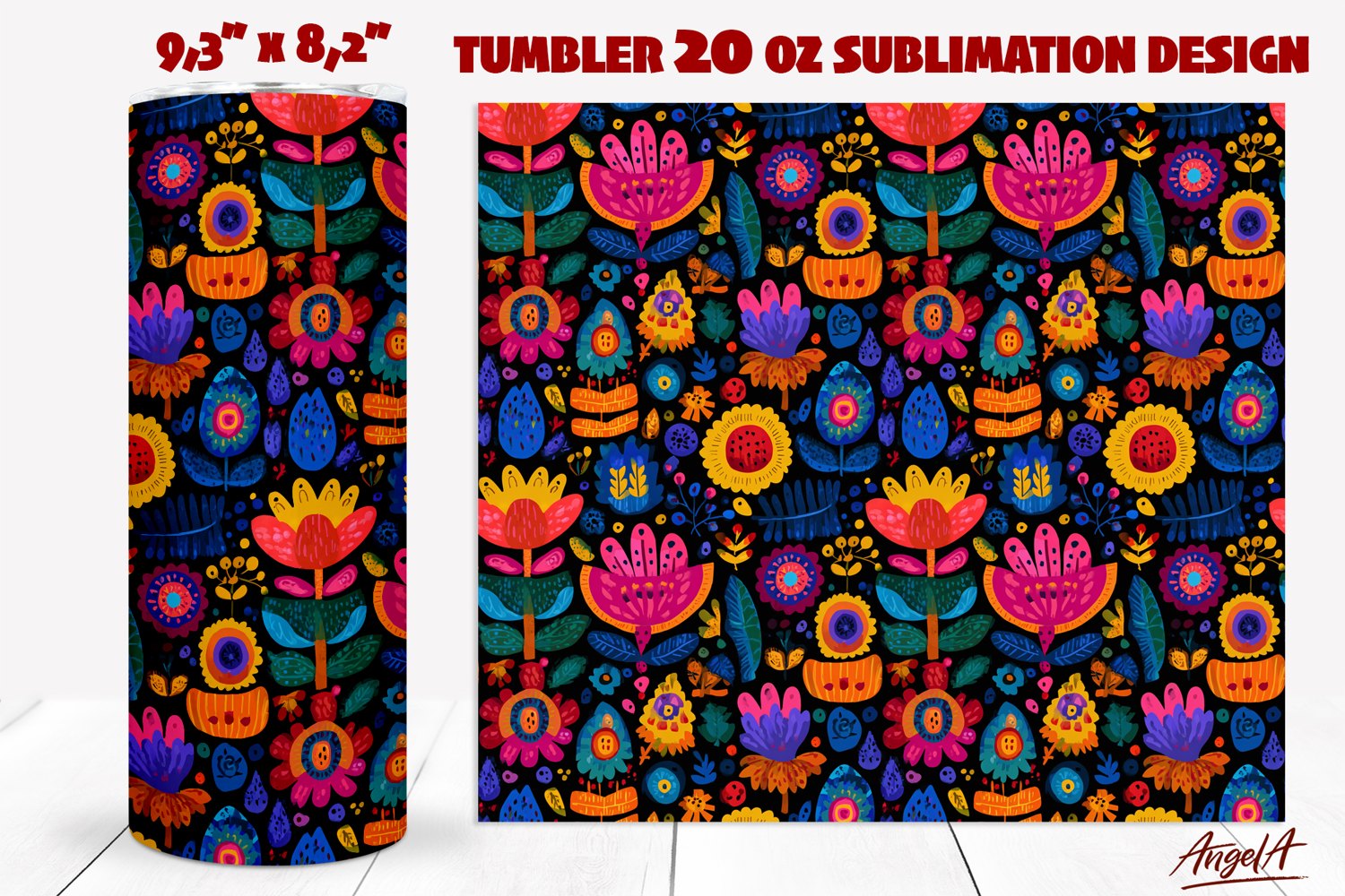 Hand Drawn Flowers Whimsical Paper 20 Oz Tumbler Wrap Summer Tumbler Design Tumbler Wrap Sublimation Folk Art Flowers Floral Tumbler Wrap Colorful Flowers Tumbler Folk Art Floral Ethnic Pattern Tumbler