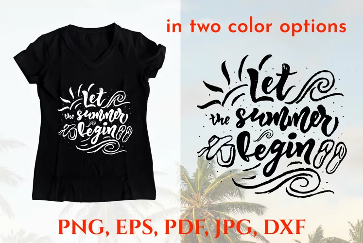 Summer positive quote Let the summer begin. Hand brush texture lettering in two color white and black. Perfect for various prints of clothes, bag, t-shirt, cup, home decoration.