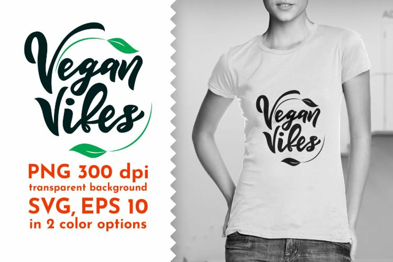 Motivational quote Vegan vibes with leaves. Health care concept. Use for t-shirt print, bag, tote, mug, cup design, note book cover. Perfect inscription for Calendar, Greeting Cards, Invitation, Poster, Banner. This Motivational Quote Design will be perfect for your other project. Created in hand lettering style.