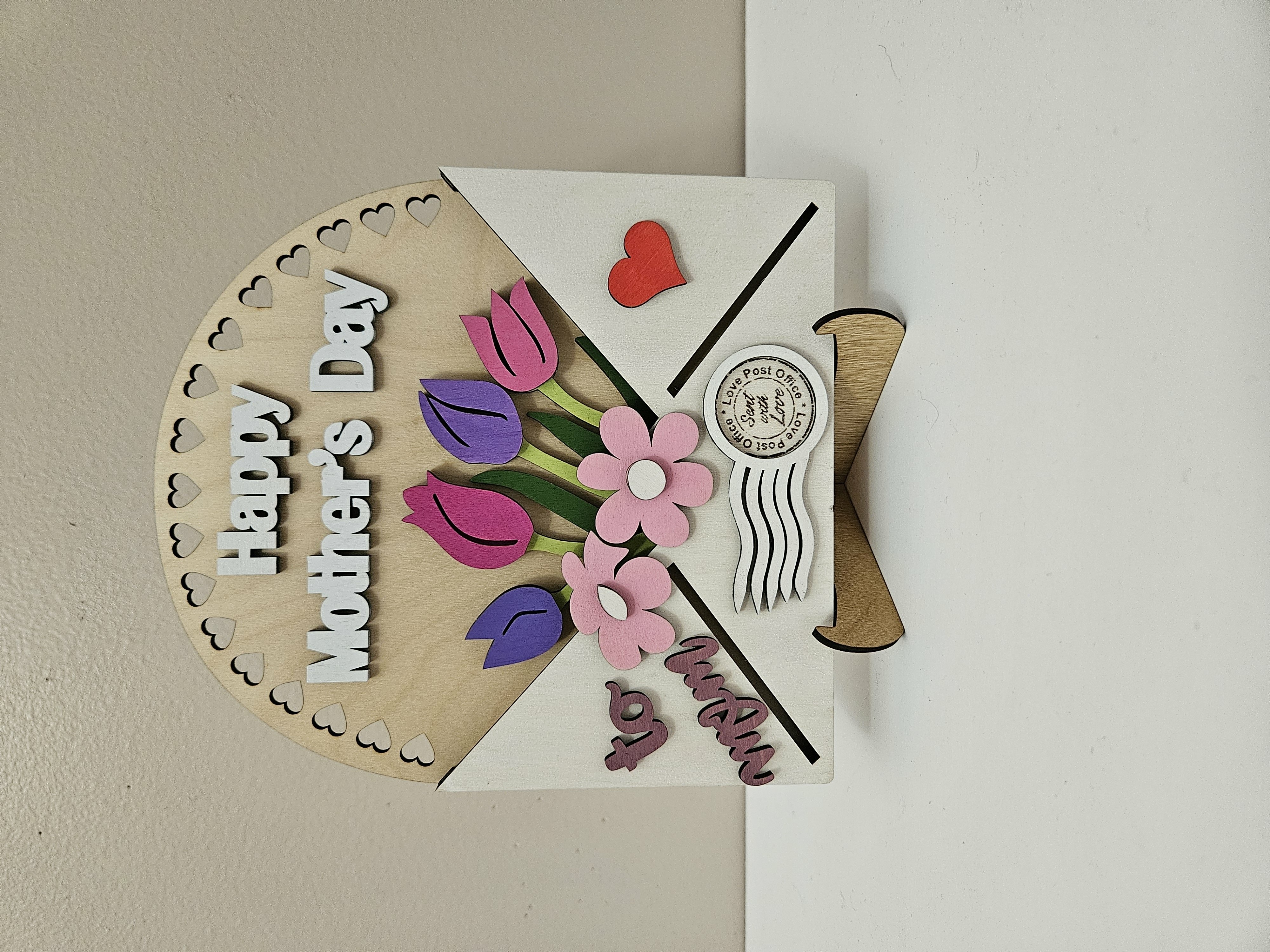 This incredible Mother's Day Gift Post Card Envelope with flowers, post stamp, heart and stand is a unique present for the Mother's Day Holiday! This product allows you to put the tulip flowers inside the envelope, as well as to put inside some small items - like folded money or a small greetings post card. Plus you will get a stand for three different material thicknesses - 1/8 inches (3 mm), 1/6 inches (4 mm) and 1/4 inches (6 mm).