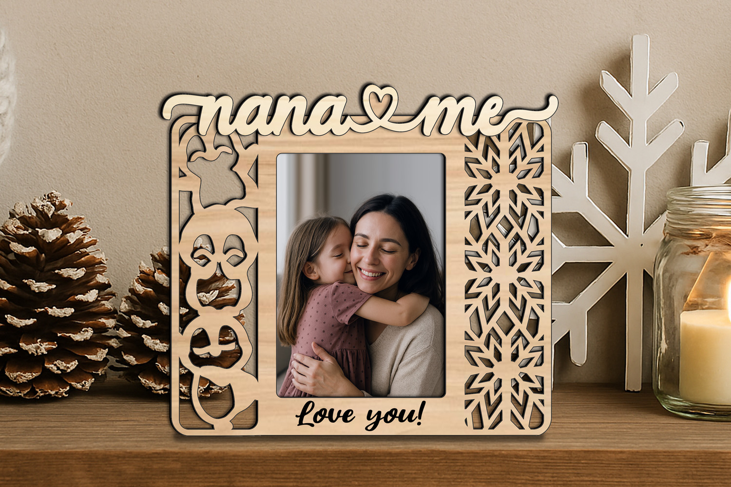 This awesome Snowflakes Penguin Christmas Winter Design of Nana and me Appreciation Photo Frame is an incredible home decoration and a gift for your Nana - no matter the occasion! Just slide in the back pocket of this multi-layered item a photo and you will create the perfect present! In order to achieve different colors and shades, use different materials, acrylic paints, wood stains and other such coloring materials!