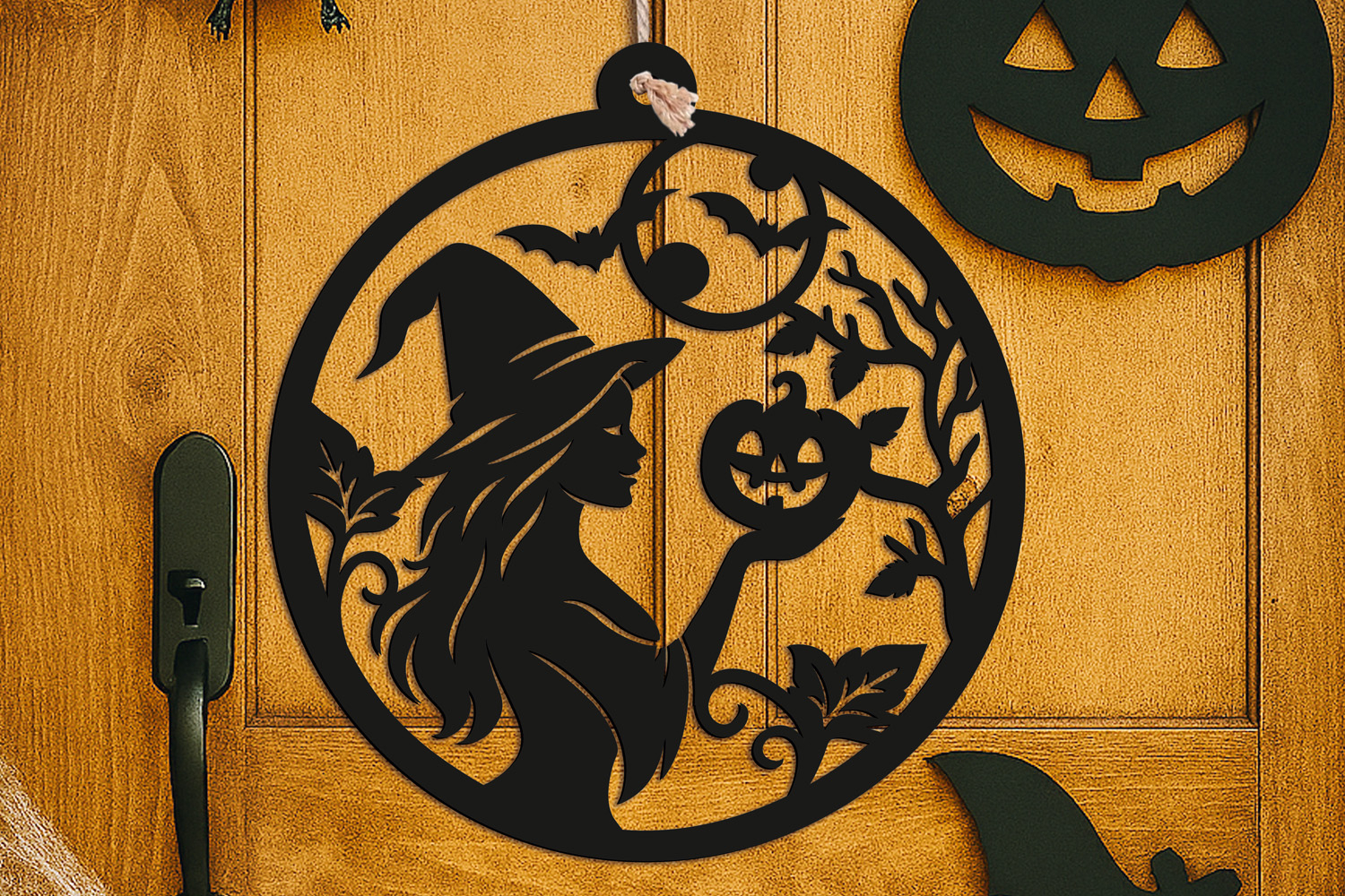This exclusive Witch and Pumpkin Halloween Door Hanger is a great welcome sign for your door for the scary holiday! Size is around 10 x 10.9 inches (25.4 x 27.5 cm). You can resize it, but if you make it smaller, keep in mind the thin elements - they can break if too small!