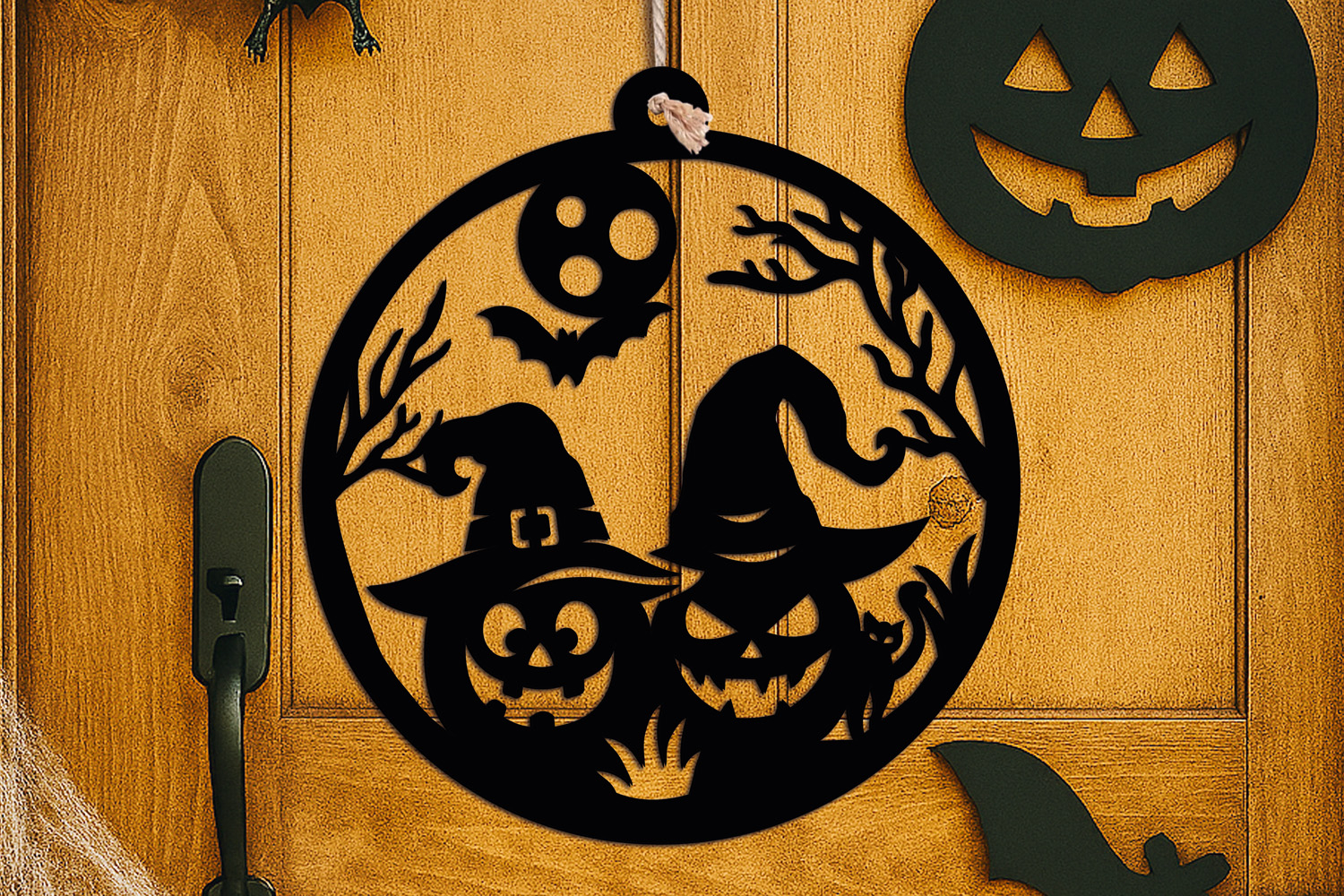 This remarkable Spooky Pumpkins Halloween Door Hanger is a great welcome sign for your door for the scary holiday! Size is around 10 x 10.9 inches (25.4 x 27.5 cm). You can resize it, but if you make it smaller, keep in mind the thin elements - they can break if too small!