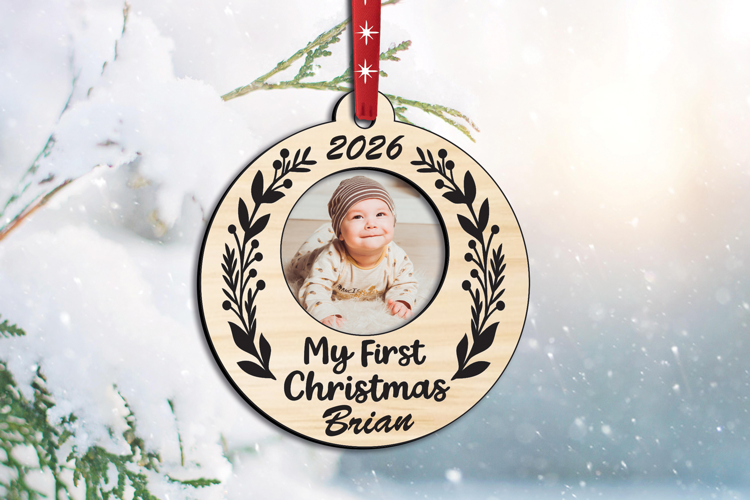This unique My First Christmas Ornament with a Baby photo is a great Christmas present and keepsake for newborn babies and their parents for the Christmas holiday!