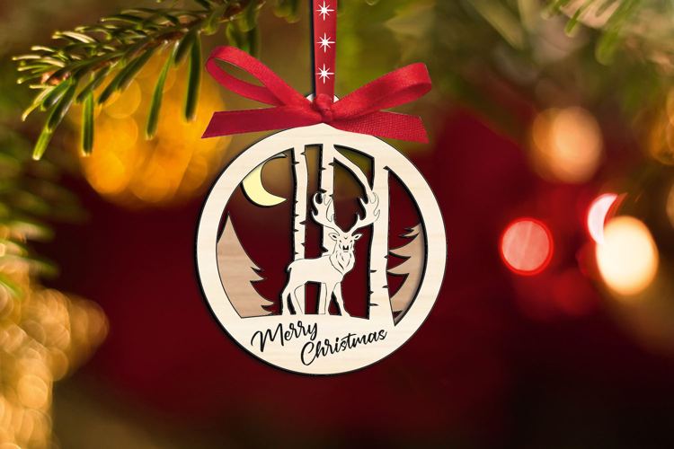 This unique Merry Christmas Tree Ornament with a proud deer in the winter woods is a great House Warming and Home Decor for the greatest holiday - Christmas!