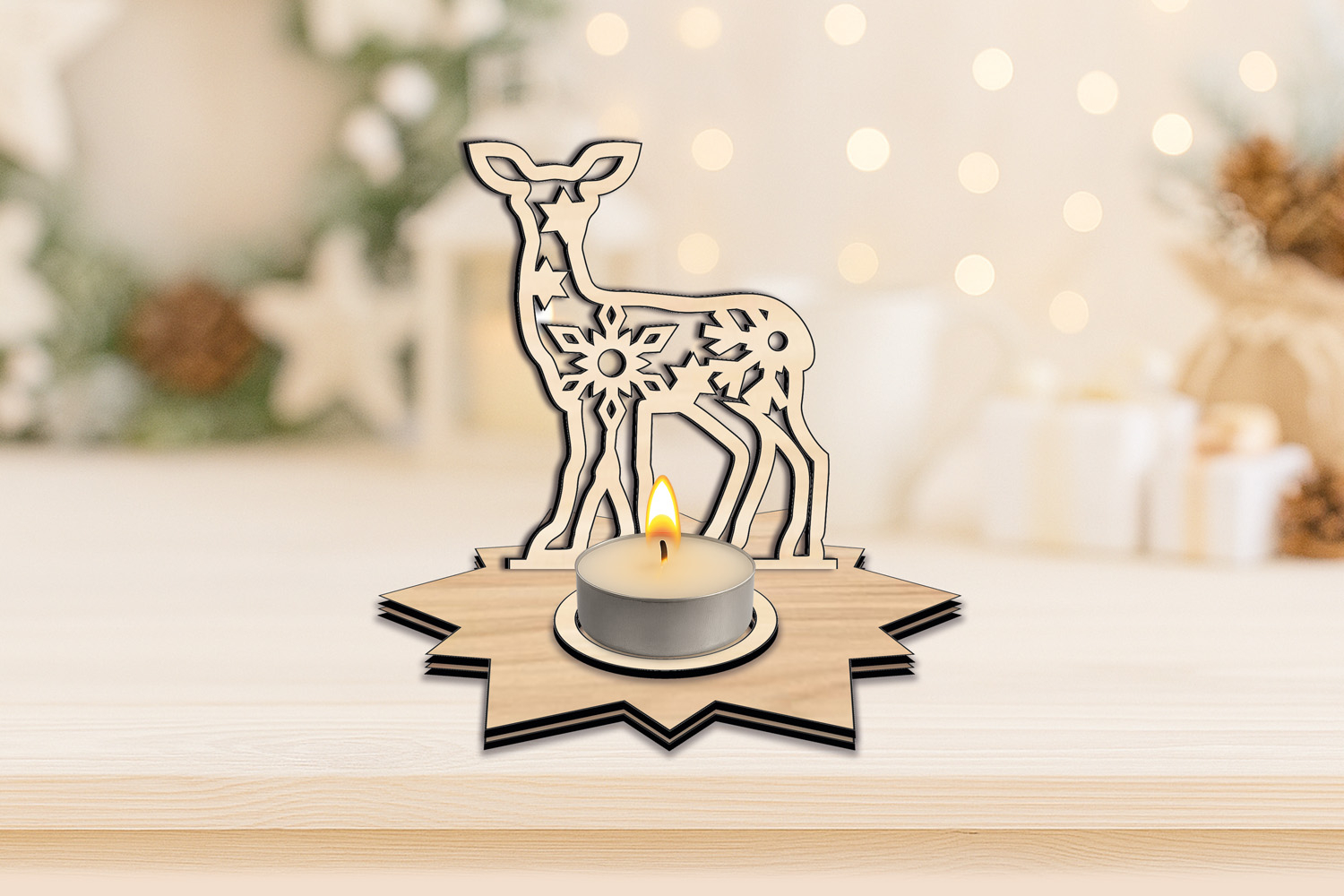 This unique Deer Snowflake Winter Candle Holder is an amazing gift for the Christmas Holiday! The idea of it is to put a tea candle with a base of up to 1.77 inches (4.5 cm) into the circle cut hole and light it up! Enjoy the warmth and the joy of it during the Christmas festivities! Keep in mind that this product is a multi-layered item, so use glue suitable for the material that you will make it from.
