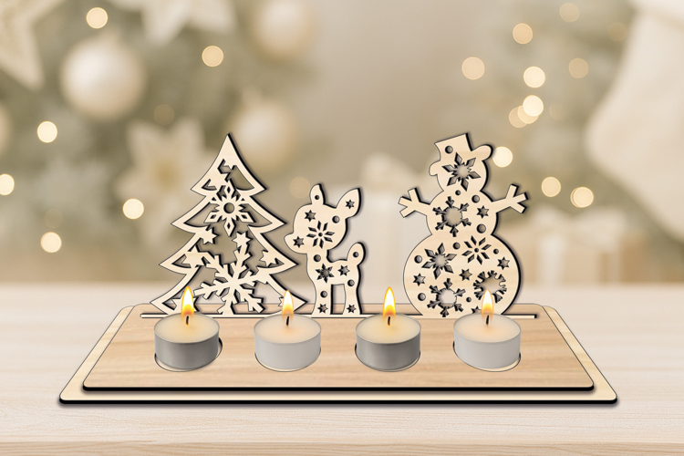 This one of a kind Happy Holiday Spirit Christmas Candles Holder with Snowman, Deer and Pine Tree is a great gift for the Christmas Holiday! The idea of it is to put 4 tea candles with a base of up to 1.77 inches (4.5 cm) into each circle cut holes and light them up! Enjoy the warmth and the joy of it during the Christmas festivities! Keep in mind that this product is a multi-layered item, so use glue suitable for the material that you will make it from.