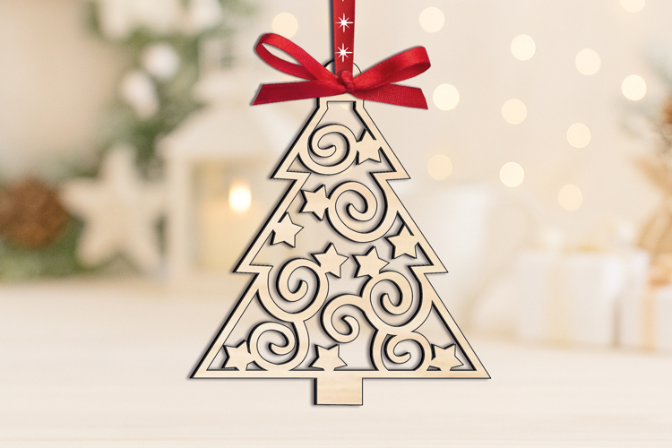 Winter Pattern Christmas Tree Ornament SVG Laser Present example image 1